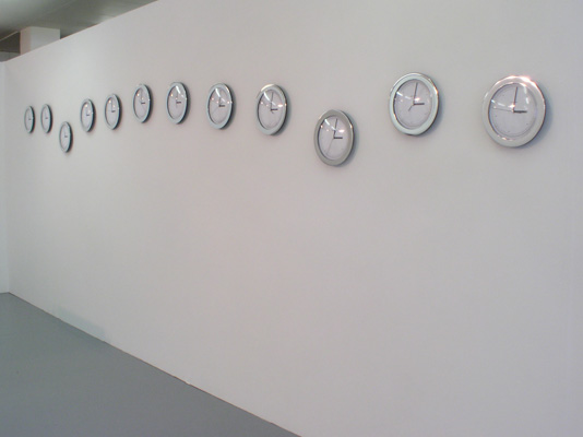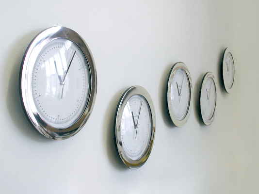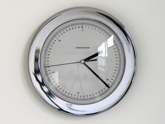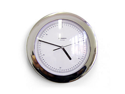 electric analogue clock calibrated to, and hung at, height of individual