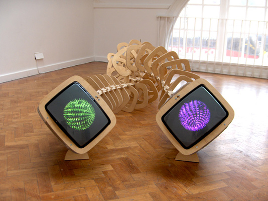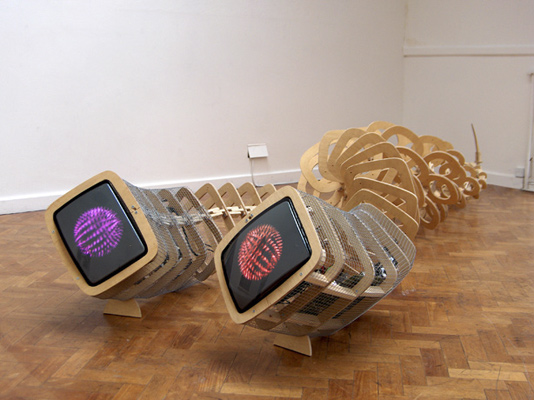 digital animation, dvd system, televisions, wire mesh, wood